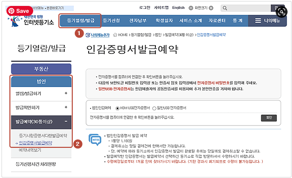 인감증명서 인터넷발급 방법 (법인)