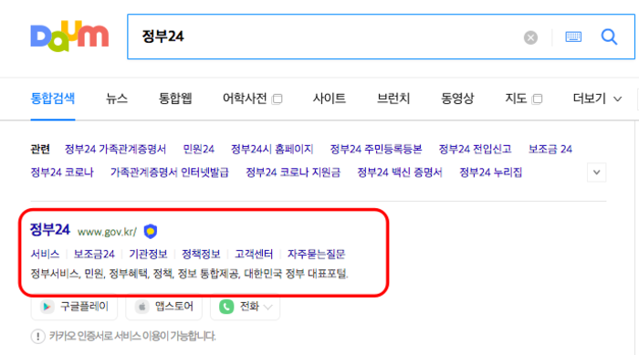 주민등록초본을 온라인으로 발급받으려면 먼저 정부 24 홈페이지에 방문해야 합니다. 다음 포털 검색에 정부 24를 검색하면 위의 사진과 같은 바로가기가 표시됩니다. 이과정이 어렵다면 아래를 통해 이동하시기 바랍니다.