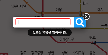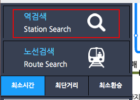 만약 지도에서 지하철역을 찾기 어려우시다면 좌측 메뉴 역검색을 이용할 수 있습니다. 역검색을 클릭하면 역 이름 입력란이 나옵니다. 여시서는 대치역을 입력해 보겠습니다.